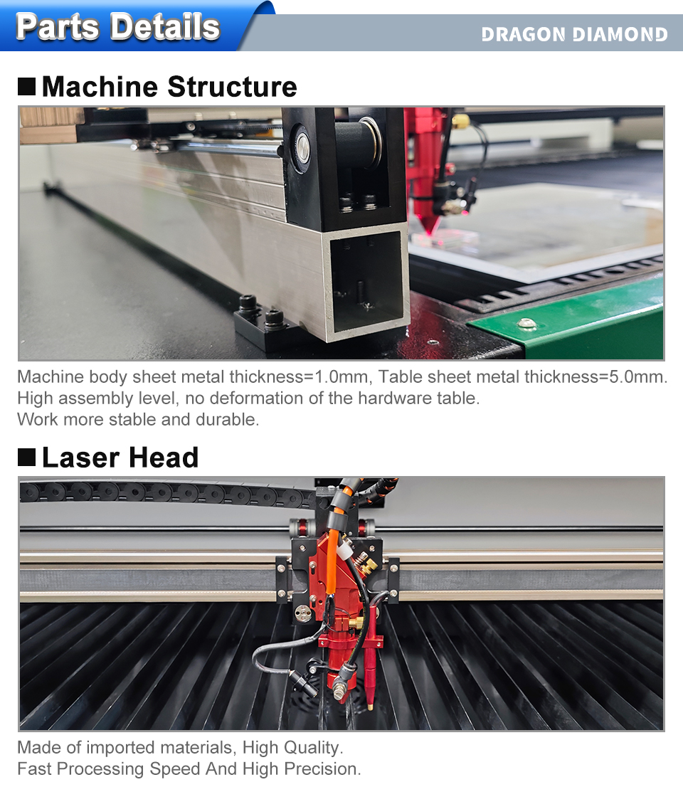 4. High quality laser beam. It uses high-quality laser with outstanding laser beam quality, which ensure rapid cutting and engraving speed, stable and durable operation, and high cost performance.